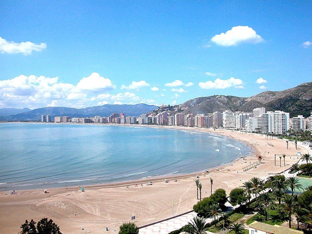 Una playa amplia y tranquila con arena fina y dorada. La calidad de sus aguas, sus servicios y las características de su arena están avaladas por la concesión de diversas certificaciones medioambientales y de calidad que acreditan su buen estado. Es de fácil acceso gracias a un largo paseo bordeado de edificios, restaurantes y tiendas. El mar tiene fondo de arena por toda la bahía. La escuela dispone de su canal de salida de embarcaciones delante de las instalaciones.